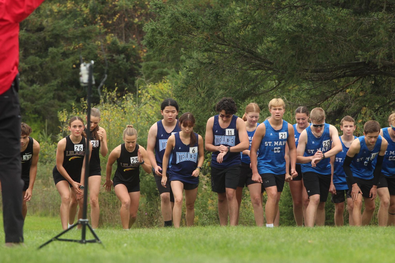 Leland sophomore Sophia Grinage took over the girls race at the Hail Mary Invite at Veronica Valley Park in Lake Leelanau and won with a time of 19:23.