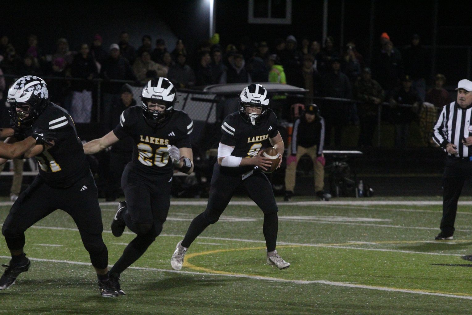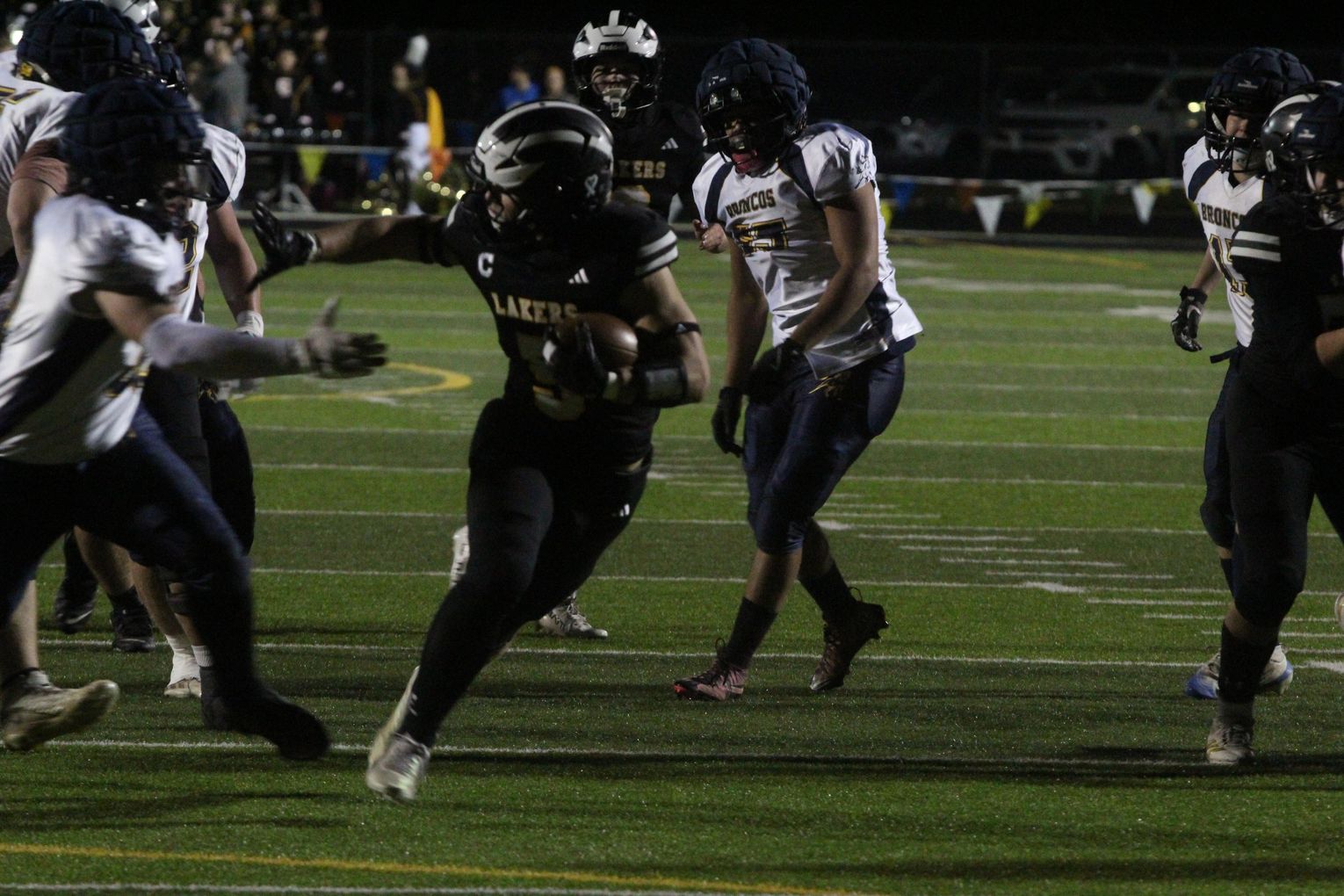 On the next possession, the Broncos stuffed Glen Lake on the 2-yard line after a consistent Laker attack. Lammerson had a big pass to Breckin Nerg and a long Lammerson quarterback run, but couldn't finish it off to go into the fourth quarter tied 14-14.