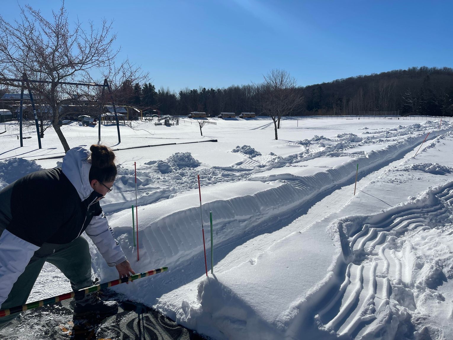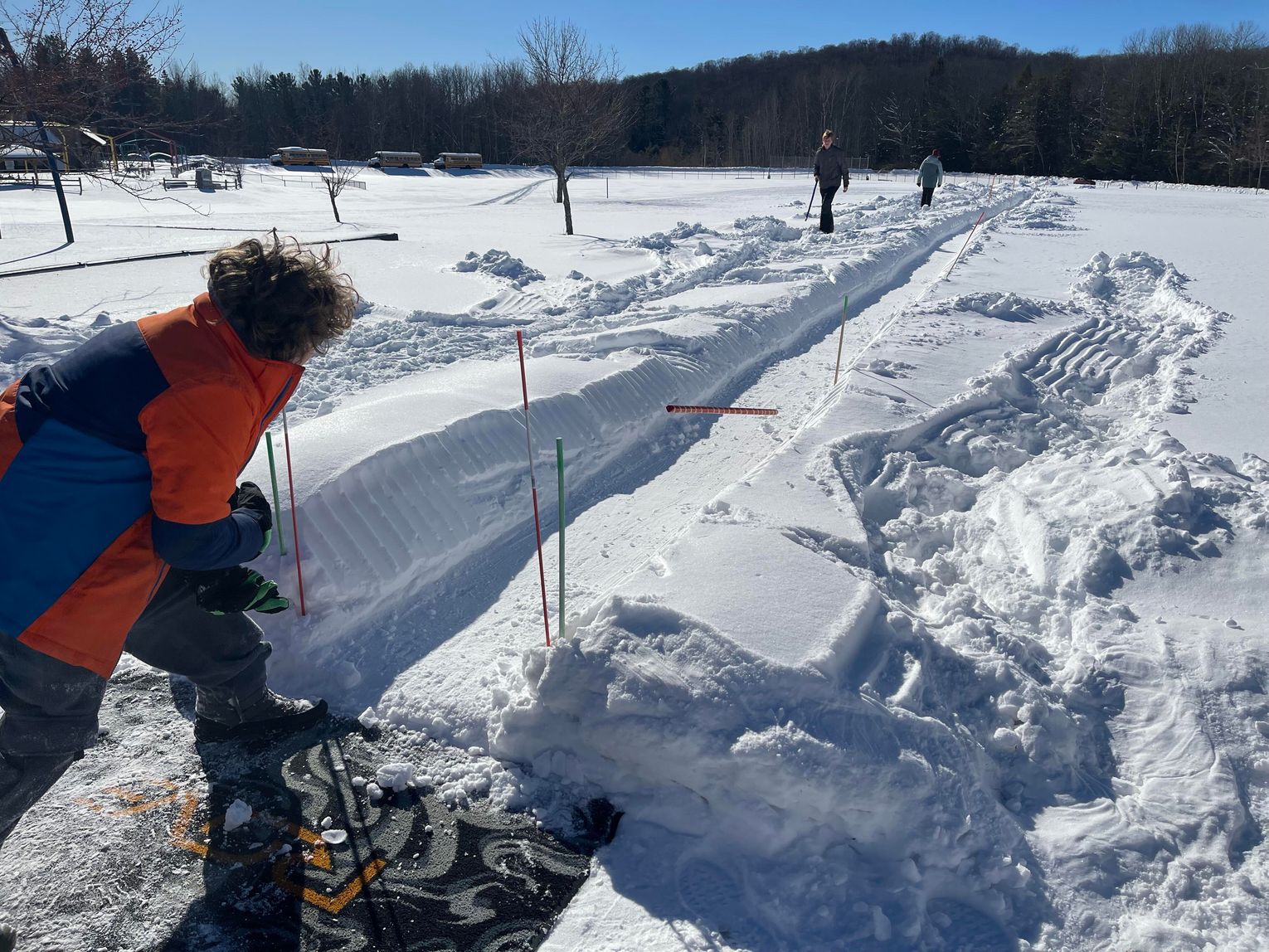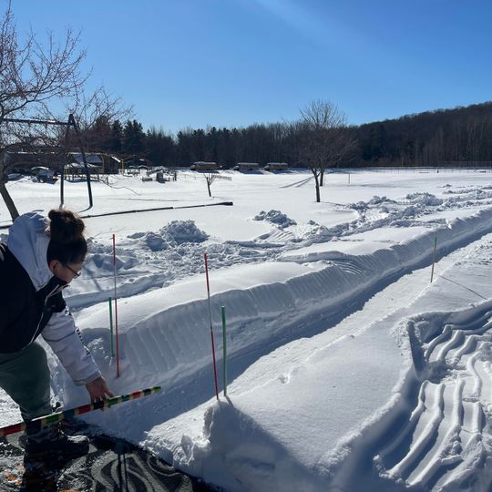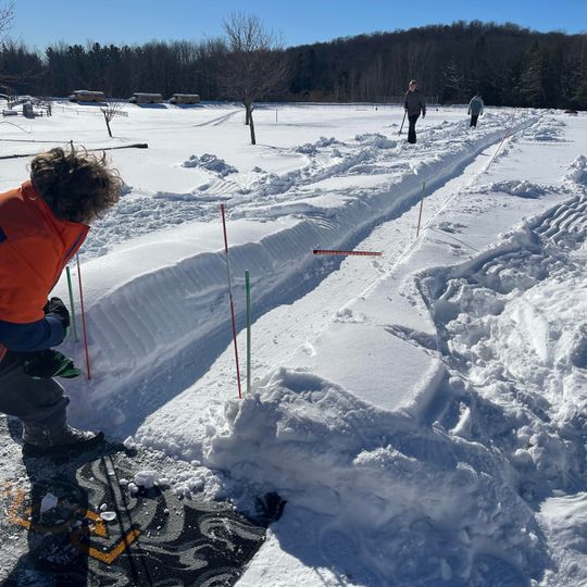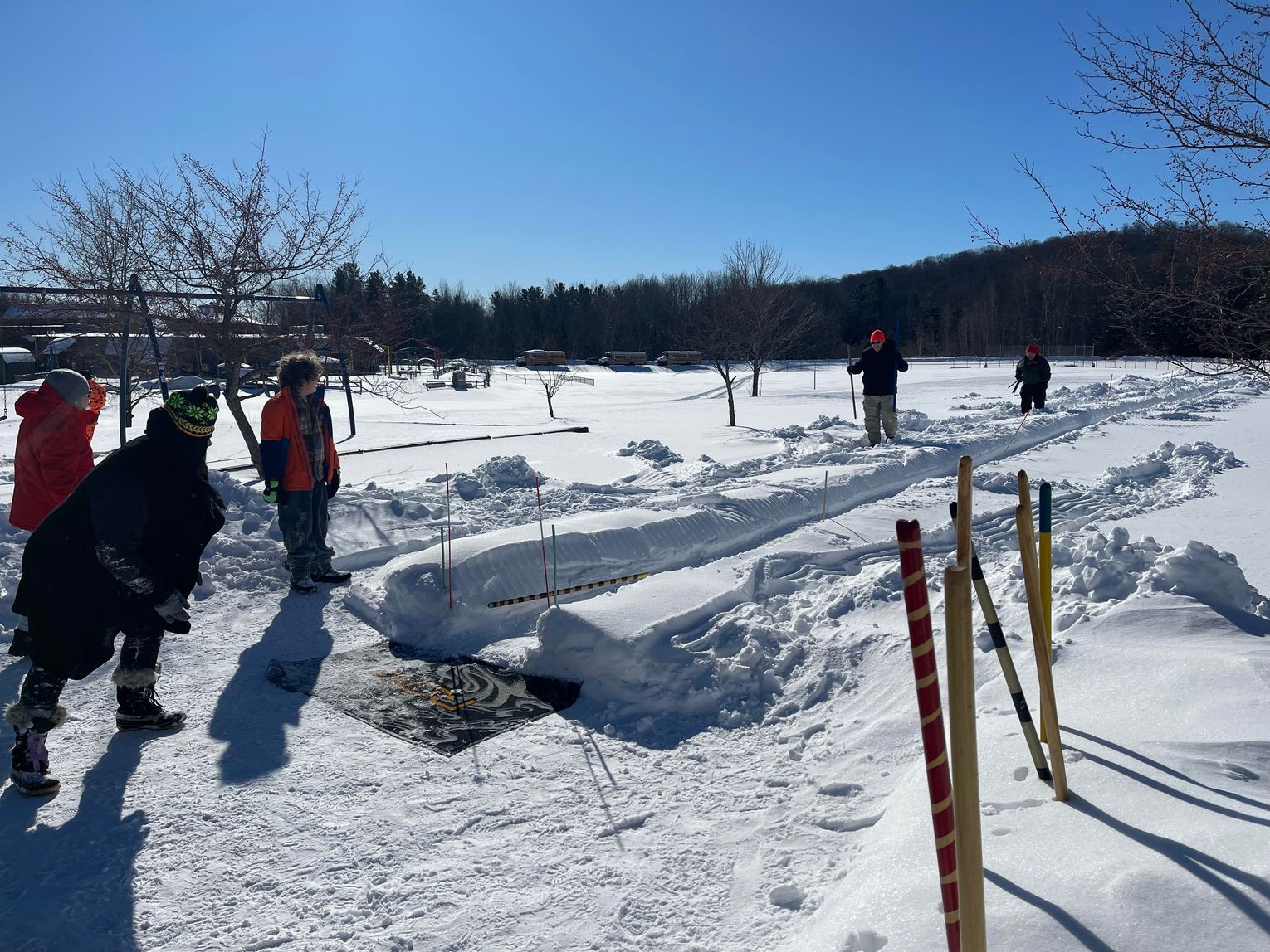 With the sun shining all day and no clouds in sight, GTB Tribal Librarian Francis Carew was able to host the rescheduled winter games in Peshawbestown, which was cancelled due to extremely cold temperatures the weekend before. Attendees made use of and enjoyed Carew’s handmade 200 foot-long snow snake flat track in the Strongheart Center softball field, as well as spear throwing through a hoop and sledding opportunities outdoors. Three Sisters soup, hot dogs, and hot chocolate was also served at the event inside the Strongheart Center.