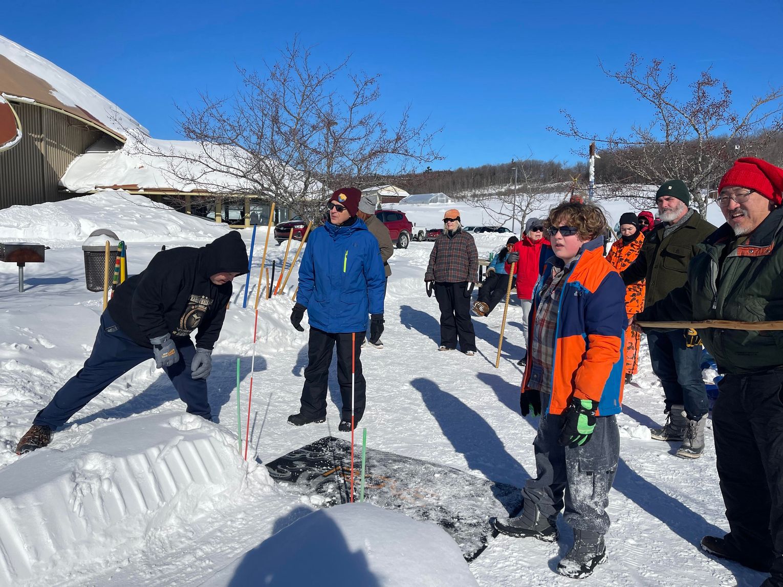 Community members of all ages gathered outside the Strongheart Center to play traditional Anishinaabeg winter games, including snow snake and spear throwing, at the Grand Traverse Band (GTB) of Ottawa and Chippewa Indians’ annual winter festival on Saturday.