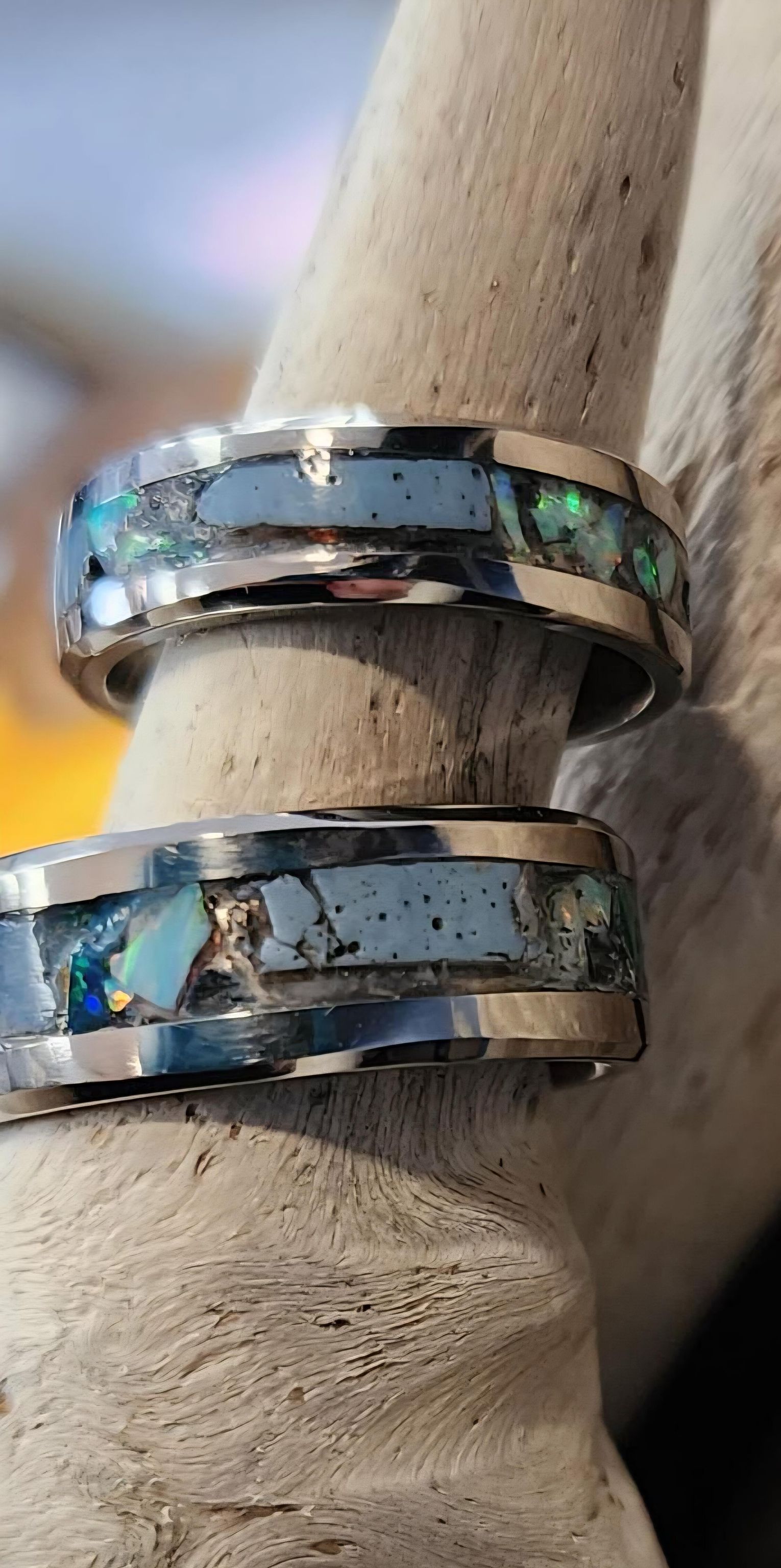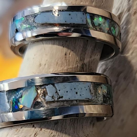 “It comes down to the personal want and what they’re looking for and what their idea of the ring would look like… Everyone has their own idea and their own look that they want the ring to be, and I kind of lean on them to push me, and then once they push me, I take off and go,” Wack said. “So I can run the gamut of colors and I can kind of mesh the feel of the stone. If it’s a Petoskey stone, we can inlay something that’s a little more earthy to it. If it’s more of a Leland Blue or Yooperlite, we can get some orange in there and some glow powders in there... There’s lots of different things we can do.”