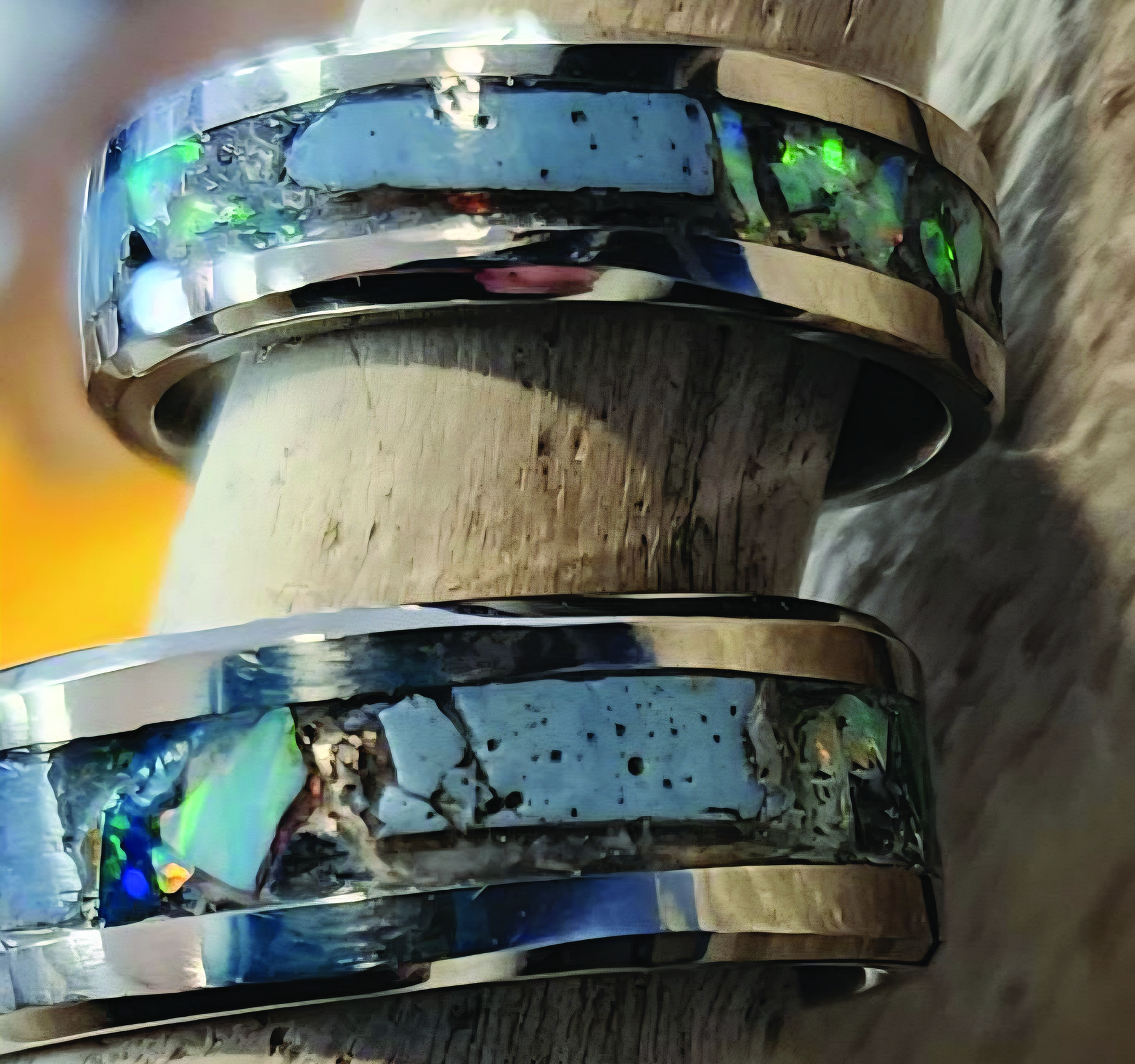 “It comes down to the personal want and what they’re looking for and what their idea of the ring would look like… Everyone has their own idea and their own look that they want the ring to be, and I kind of lean on them to push me, and then once they push me, I take off and go,” Wack said. “So I can run the gamut of colors and I can kind of mesh the feel of the stone. If it’s a Petoskey stone, we can inlay something that’s a little more earthy to it. If it’s more of a Leland Blue or Yooperlite, we can get some orange in there and some glow powders in there... There’s lots of different things we can do.”