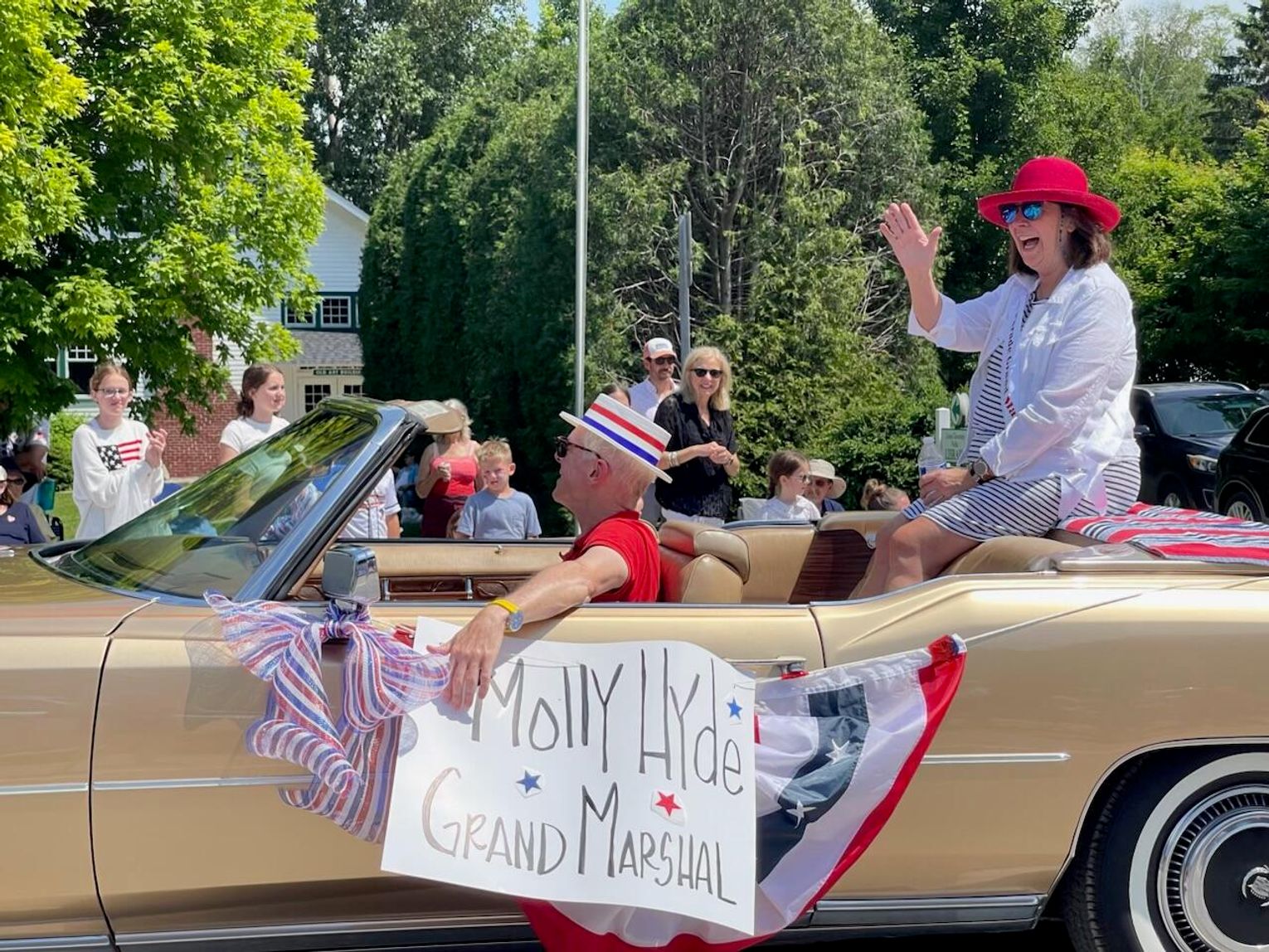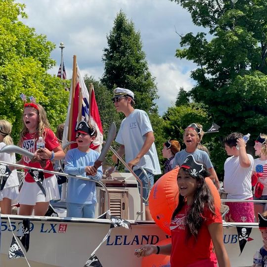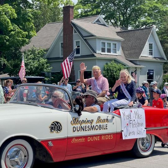 Hundreds of people attended Leland’s annual Fourth of July parade down Main Street on Friday afternoon. The parade king and queen, Mike and Mary Fleishman, were driven by Tom Van Pelt and his wife, Deb, in their 1956 Oldsmobile Convertible, the “Sleeping Bear Dunesmobile.” The grand marshall was Molly Hyde, and Miss Leland 1960, Diane Jackson Vipond, made an appearance in the parade via a bright red Oldsmobile Cutlass.