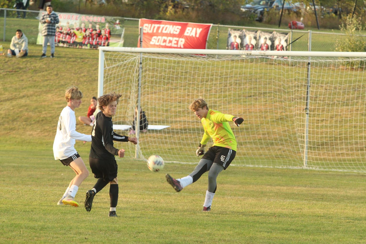 Leland boys soccer (12-8-2) captured its fourth district championship in a row with a 4-1 win over Glen Lake (17-14-1) behind a lethal offensive and a stifling defensive attack in an MHSAA Div. 4 tournament game hosted by Suttons Bay.